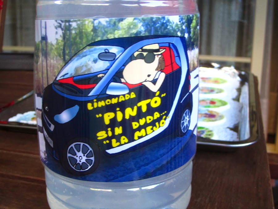 "Ya te devolveré la botella". E Inés dijo aquello de "Bah!, déjalo, da igual". Pero iba pasando el tiempo y no se la devolvía y me iba sintiendo más culpable. Así que para compensar, se la devolví un poco "tuneada" (como siempre a última hora mandándola imprimir en el MediaMarkt, plastificándola en casa y pegándola con pegamento de silicona justo en el minuto antes de envolverla y notando como se iba despegando poco a poco :-( )