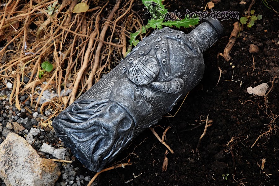 En el vídeo de hoy les mostrare como decore esta peculiar botella Inspirada en Davy jones de piratas del caribe con efecto piedra ideal para decorar cualquier rincón.