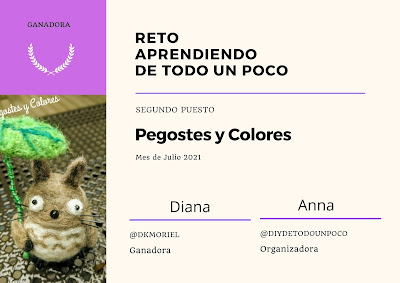 Todavia no puedo creer que fui una de las ganadoras del DIY De Todo un Poco del mes de Julio del blog de Anna Llansa @diydetodounpoco. El tema fue DIY con Fibras Naturales y DIY con Flores Prensadas. Maria y Maria Ines de Decosurvintage ganaron el sorteo, Mercedes de @zeditas gano en primer puesto y yo el segundo con mi Totoro en Lana Afieltrada.