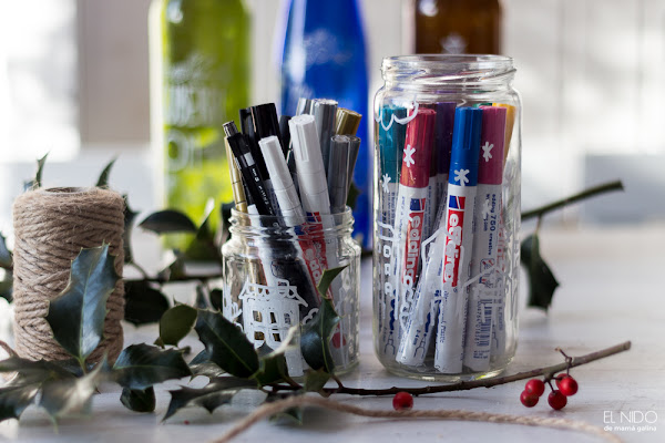Una de las clases fue hacer un bosque de árboles de Navidad con piedras, que era un post que había gustado mucho en el blog. Para la otra elegí un DIY de reciclaje que me gusta mucho, que es decorar botes y botellas de cristal con rotuladores permanentes. En el blog ya te expliqué como decorar botes con esta técnica utilizando plantillas y hoy te cuento cómo hacerlo a mano alzada.