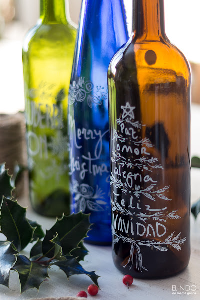 BOTELLAS NAVIDEÑAS DECORADAS CON ROTULADORES Materiales