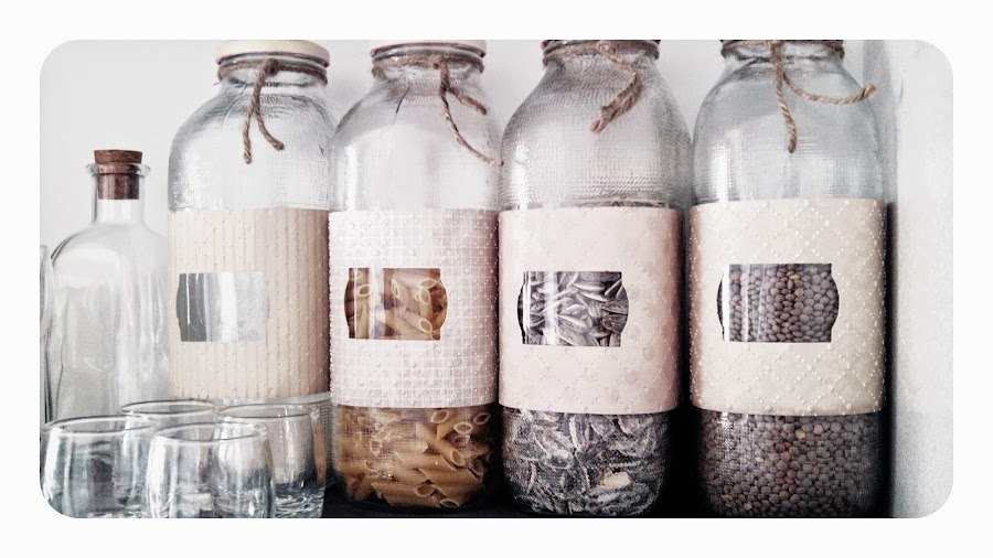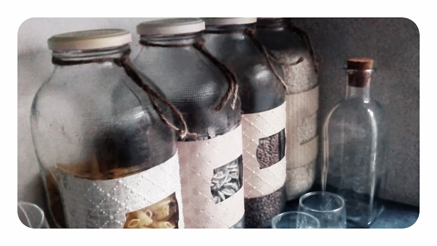 Hoy os quiero enseñar como he recuperado unas botellas de cristal de zumos, Fruco ero qu era la marca, de hace mas años que la tana, que ya usaba mi madre incluso antes de nacer yo, para guardar los macarrones, arroz, etc. Las substituyó por fiambreras cuando la época del "táper" jejeje, pero no las tiró, es otra diogenera jajajja!