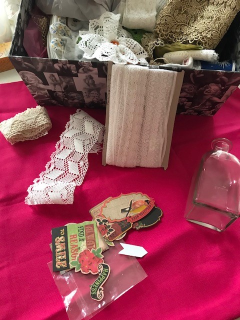 Lo primero de todo,me voy a mi caja de materiales y empiezo a escoger como decorar esta botellita
