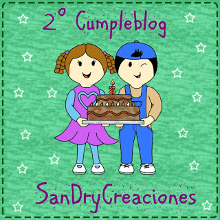y ahora ya me voy a acompañar a una maravillosa pareja de hermanos (Sandra & Dani) de SanDryCreaciones que están celebrando su segundo cumple-blog