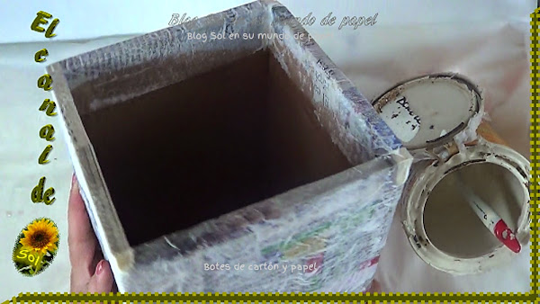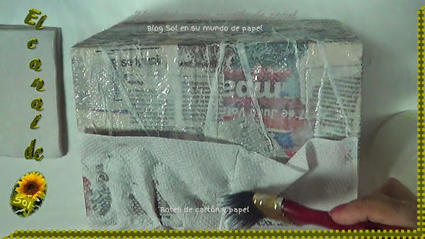 Damos una capa de cartapesta con papel periódico, únicamente por la parte exterior de la caja, por dentro vamos a pintar, la tapa si va completa