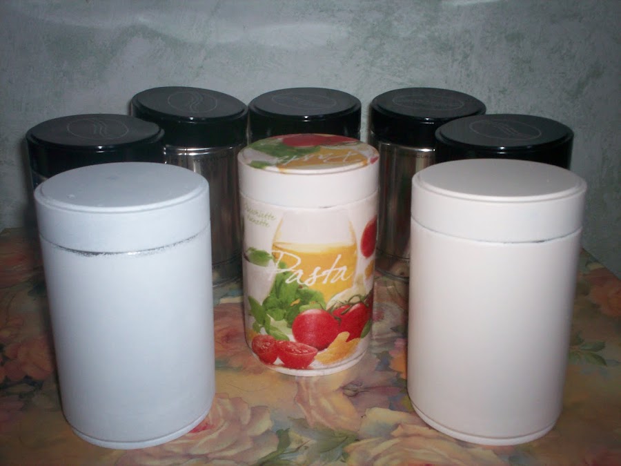 Bueno ahora quiero enseñaros uno de los proyectos que tengo en marcha, son botes de café que los estoy transformando para la cocina, tengo unos cuantos, gracias a mi cuñado, que donde trabaja los tiran y en cuanto ví uno en su casa, los fiche y dije que me los fuera guardando.