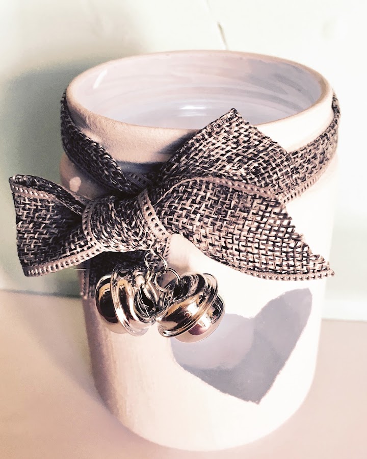 Bote de cristal reciclado pintado con Chalk Paint Pintyplus en spray.
