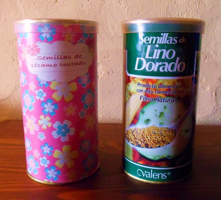Los botes de lata con tapadera de plástico tipo Nesquik o barquillos de Hacendado, esos que se utilizan en algunos productos de alimentación, pueden ser reutilizados, una vez agotado el producto, llenándolos con otros que queramos tener bien conservados y protegidos, como por ejemplo la harina o el azúcar que suelen venir en envases de papel bastante endebles.