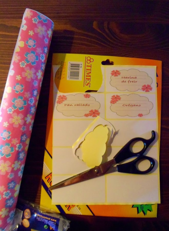 Como véis son pocos materiales y económicos. Tanto las etiquetas como el papel adhesivo los podéis encontrar en tiendas de "todo a 100", como se les llamaba antes.