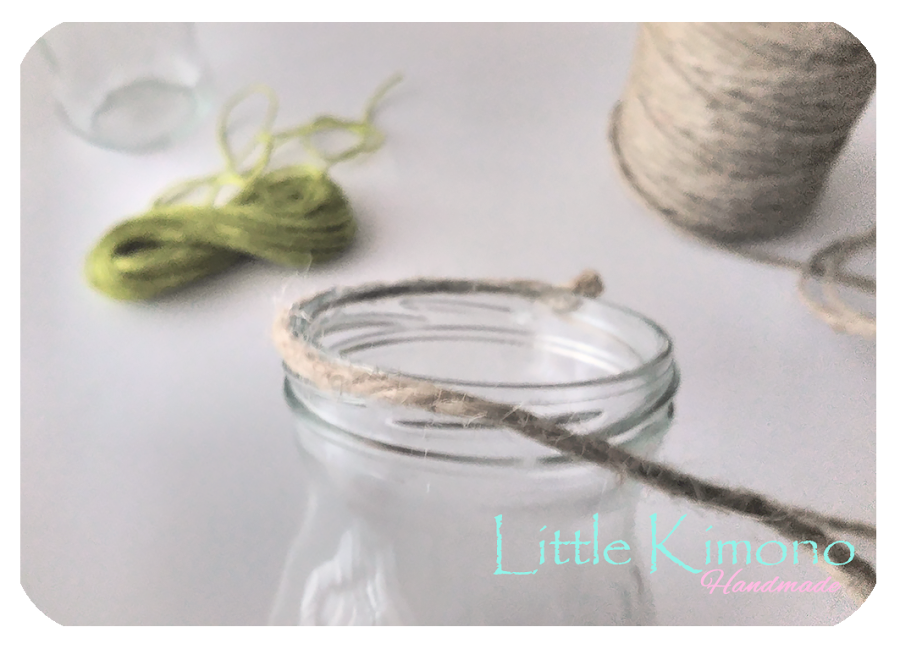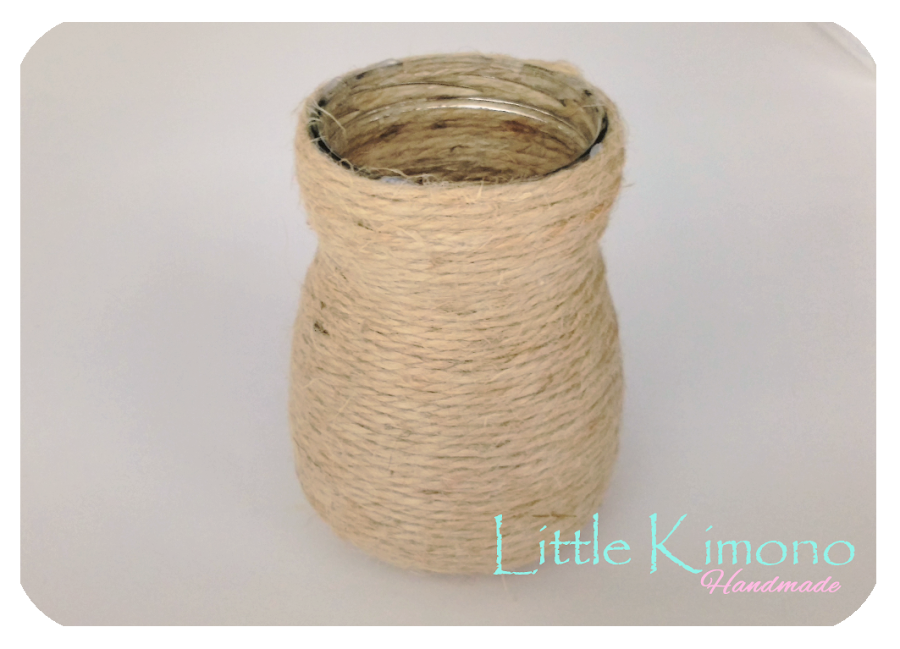 Paso a Paso: 1. Lo primero será pegar con silicona la cuerda alrededor del bote hasta cubierlo todo.