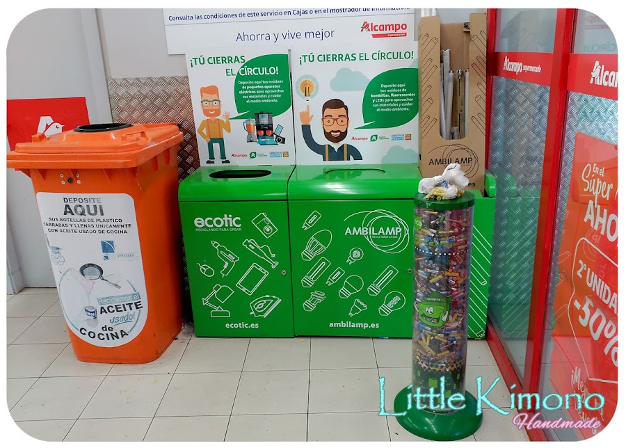 pilas, bombillas, aceite de cocina, contenedores que podemos encontrar en muchos establecimientos como supermercados y farmacias.