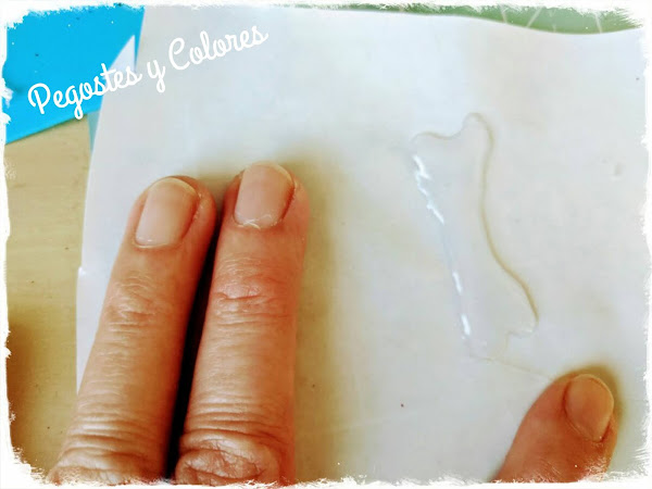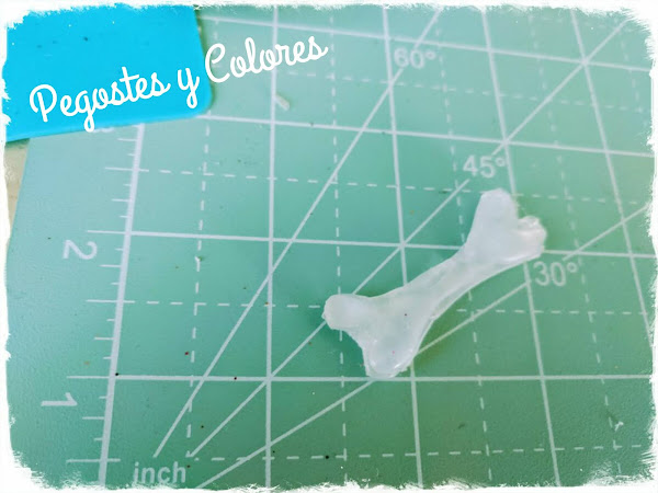 Tambien sobre papel de hornear trace el dibujo de un hueso y un dragon y los rellene con silicona caliente, deje enfriar y rellene una segunda vez. Deje enfriar y separe del papel y recorte un poco con unas tijeras. Luego las pegue a los frascos en la parte posterior con mas silicona.