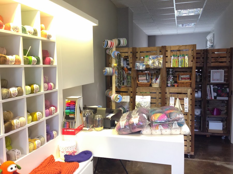 El espacio es muy acogedor, repleto de lanas, algodones, hilos, ropas y miles de accesorios para practicar cualquier labor. Además, está lleno de material para todos aquellos que seáis amantes del scrap: cintas, whasi tapes, troqueladoras, sellos, papeles, tintes... Es un no parar, os lo quedarías todos y os lo digo yo que sin practicarlo me lo llevaba todo con los ojos cerrados.