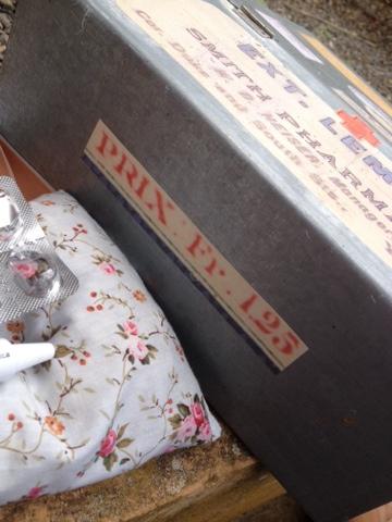 El texto de couverts estaba incrustado?quitándolo con disolvente,lija?no habia manera?asi que esa parte la pinté de blanco?.esperé a que se secara y luego la lijé ,con lija fina?así aparecia el blanco desgastado y me gustaba como quedaba..