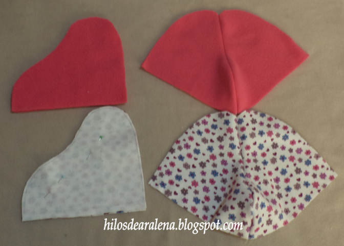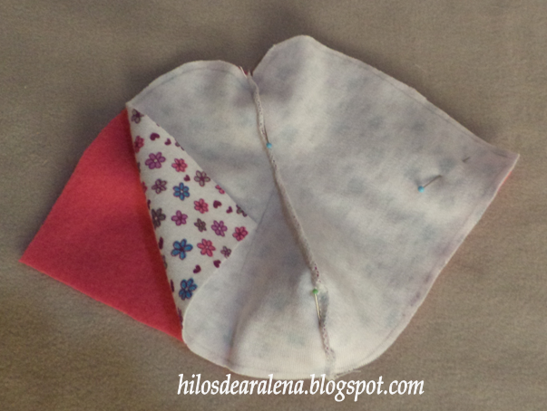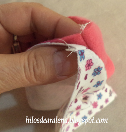 He utilizado una tela lisa y otra estampada ( no solo porque se ven lindas) para que se distingan bien .
