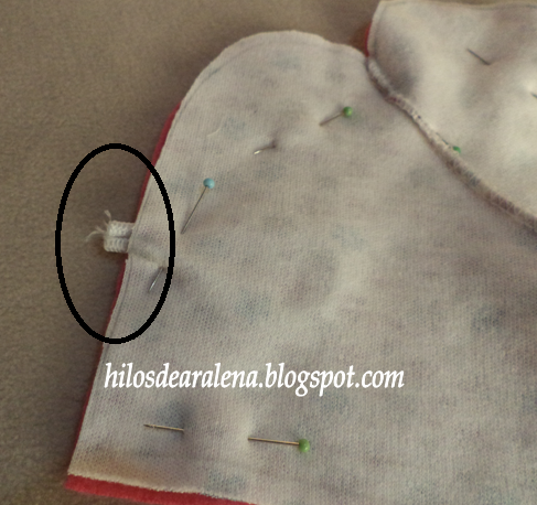 Cosemos por el contorno superior . Damos vuelta por la parte inferior y dejamos a la espera.