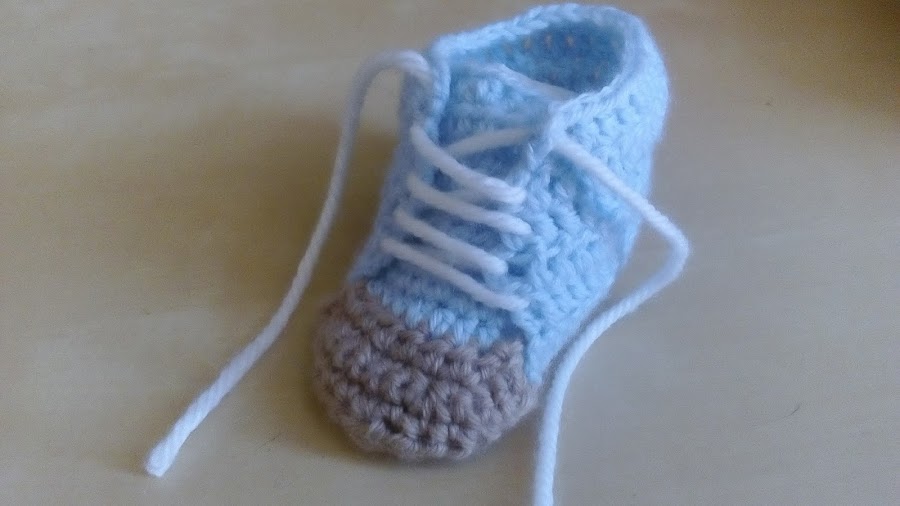 3-Ponle cordones y listo!yo he utilizado simplemente una lana más gorda para los cordones.