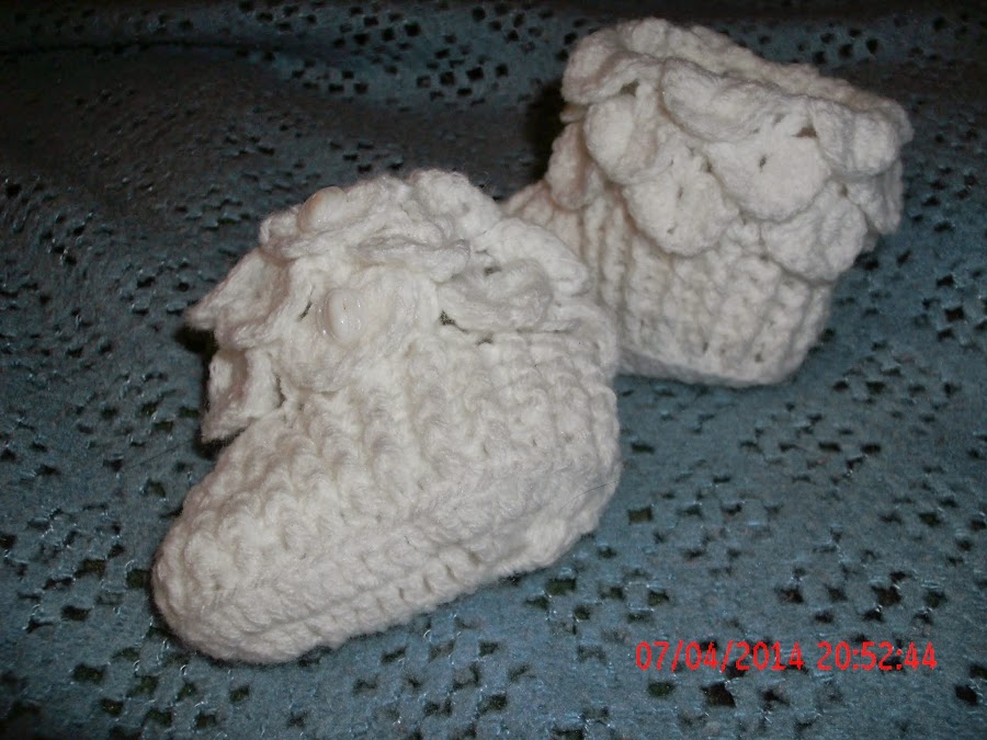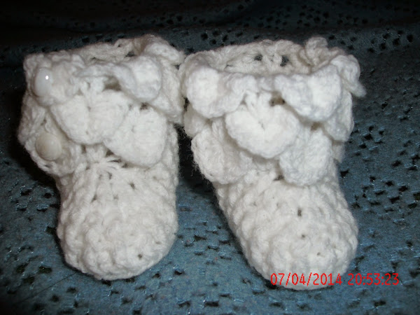 ESTAS BOTITAS SON LAS PRIMERAS QUE TEJO Y LAS HICE PARA MI NIETO, LAS SAQUE DEL BLOG DE ELAINE CROCHE. BLOGSPOT.COM.BR. SON HERMOSAS Y ELLA LAS EXPLICA MUY BIEN Y SE ENTIENDE A PESAR DE QUE EL VIDEO ESTA EN PORTUGUES, ESO SI, ME COSTO UN POCO HACERLAS PORQUE SON MIS PRIMERAS BOTITAS Y ADEMAS CREO QUE LA PROFESORA MANEJA LA MANO IZQUIERDA Y YO SOY DIESTRA. LA BOTITA DERECHA LA PUDE HACER BIEN, PERO LA IZQUIERDA ME COSTO Y LA DESARME VARIAS VECES HASTA QUE CONSEGUI TERMINARLA Y ESTE ES EL RESULTADO, NO PONGO LAS EXPLICACION PORQUE NO SE COMO. SI QUIEREN HACERLA TENDRAN QUE IR AL BLOG DE LA PROFESORA Y LES ASEGURO QUE NO SE ARREPENTIRAN, PUES TIENE UNOS TRABAJOS HERMOSOS.