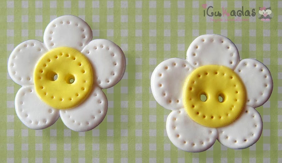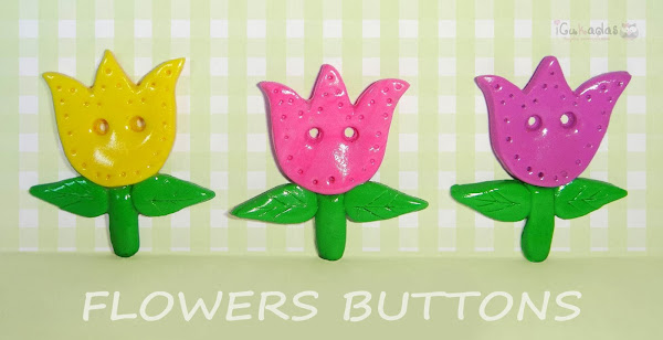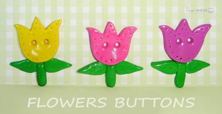 Y ya que estamos con cositas de jardín, unos botones en forma de flor, tulipanes y margaritas.