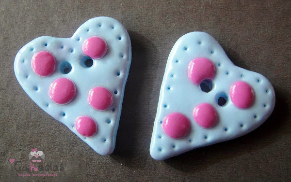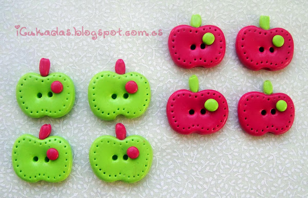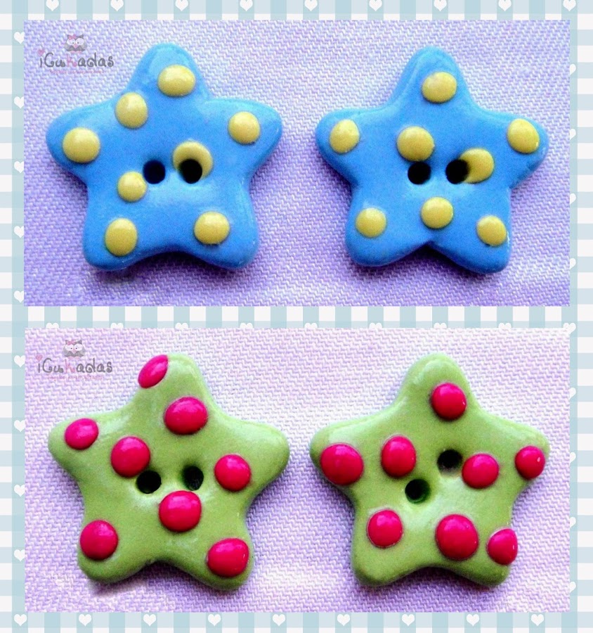 Como ya sabéis, son de fimo, o arcilla polimérica, y algunos pintados a mano, eso es lo de siempre, los hay más elaborados y más sencillitos, y los hay decorativos como siempre, pero algunos que también se podrían usar como un botón tradicional.