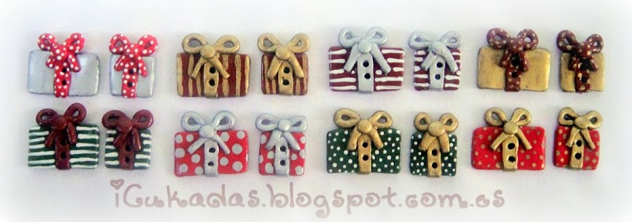 BOTONES de fimo, o arcilla polimérica, como la queráis llamar, con motivos navideños, algunos pintados a mano, para decorar las labores de estas fechas.