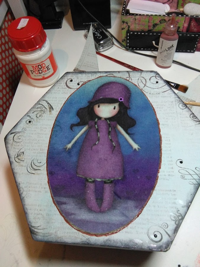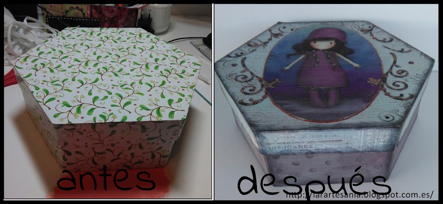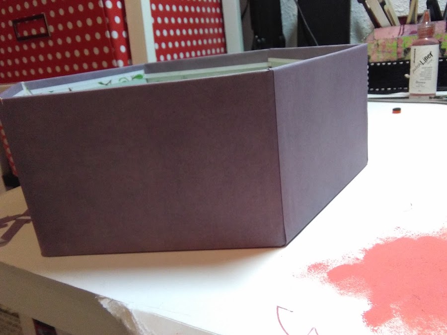 He perdido algunas fotos, lo siento : ( la parte superior la corte una vez pegada y para los laterales corte tiras a la medida para solo forrar la caja por fuera , ya que si la forramos por dentro al añadir más grosor tendríamos problemas para cerrar la caja.