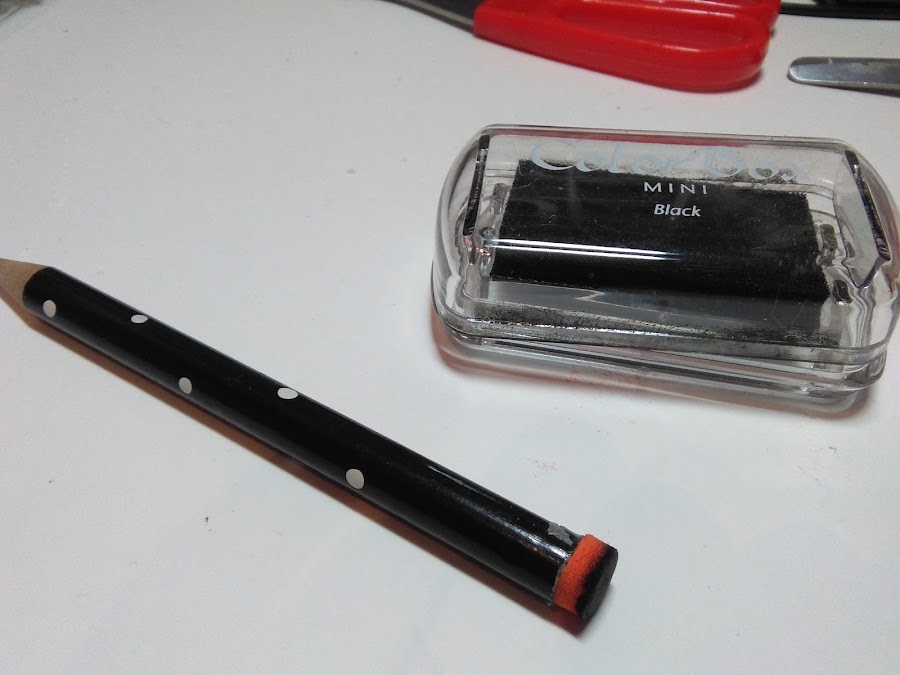 Ahora decorare con topos el papel impreso, usaremos tinta, la que se utiliza para sellos o cualquier acrílica, un lápiz al que le pegue un circulo de goma , se puede usar la misma goma que llevan algunos lápices, ya podemos estampar nuestro papel.