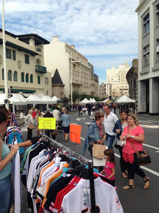 ¿En qué consiste la Braderie de Biarritz? Pues que 2 fines de semana al año (este año en abril y en septiembre) sacan todas las tiendas a la calle con descuentos de hasta el 70%. Pues imagínate una ciudad preciosa, pequeñita y llena de carpas en la calle con todas las prendas de lujo al alcance de tu mano para poder ver, tocar, comparar, quedarte con la boca abierta...