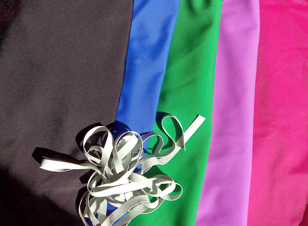 Como algunas van enseñando tipazo y modelazos de bañadores por ahí... Y ya se sabe que la envidia es muy, pero que muy mala, ya me he comprado licra y elástico para biquinis y bañadores. Para variar los colores no son nada discretitos. Ahora a ver que tal se me da eso de coser esta tela. Si me salen un churro no será por falta de interés, porque creo que me he visto todos los tutoriales habidos y por haber.