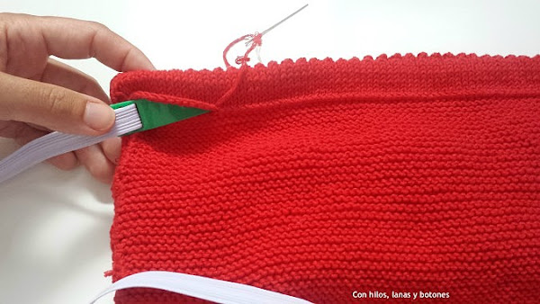 Ahora tejemos 4 vueltas más en punto jersey. Con esto habremos hecho la cinturilla de la braguita y una vez cosida tendremos un canal para pasar el elástico.