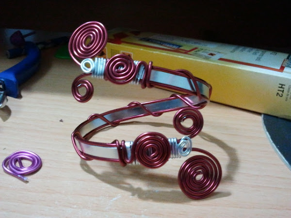 Hoy trabajamos alambre de aluminio, y que mejor que hacer con el un precioso brazalete. No se si habeis trabajado con este material, pero para mi es uno de los mas agradecidos con los que se puede trabajar. Espero que os encante...vamos al grano??? jejejejjeee