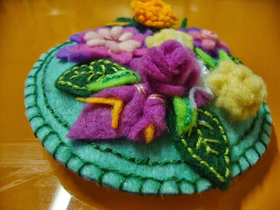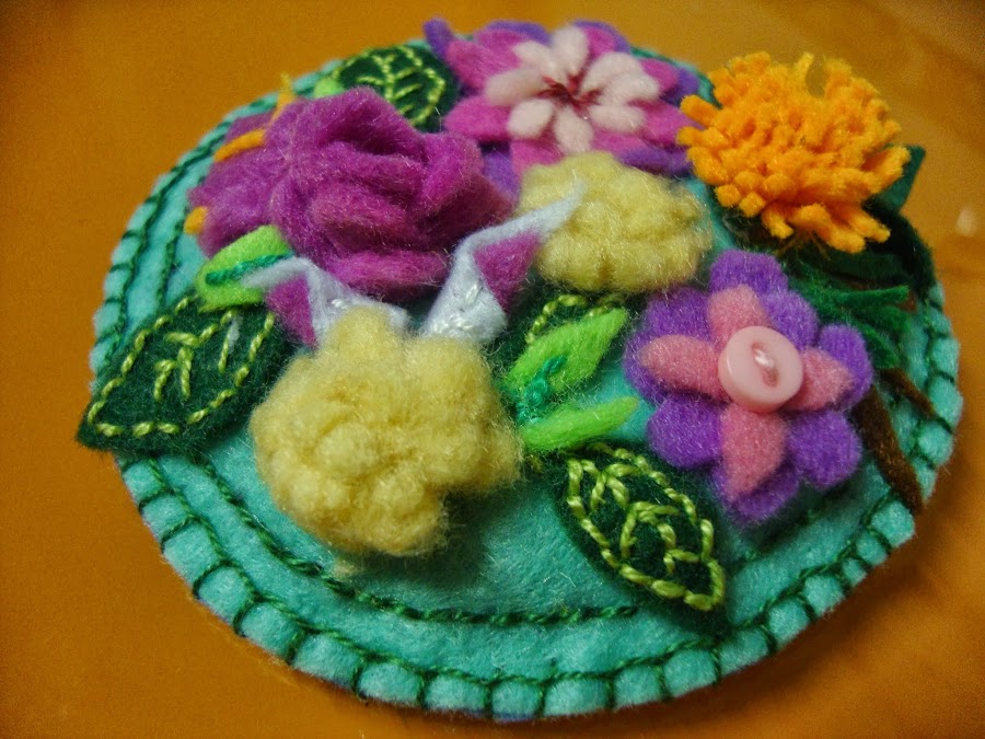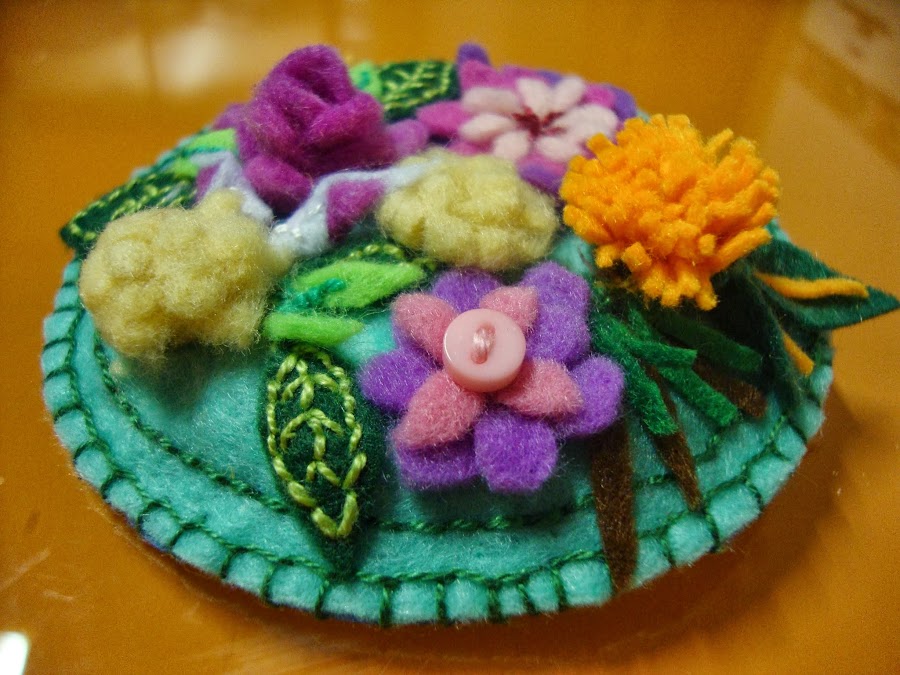 Si no tenemos pistola de silicona lo podemos coser aprovechando los agujeros o colocándole una pequeña pieza de fieltro encima a la que damos unas puntadas arriba y abajo antes de juntar la base con el resto del broche.