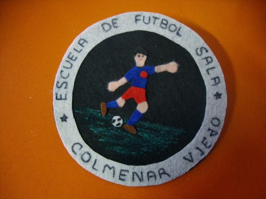 Y como los niños hacen lo que ven...no podía dejar de enseñaros la idea que tuvo mi hijo mientras me acompañaba. Quiso inmortalizar la insignia de su equipo de fútbol sala y se puso manos a la obra.