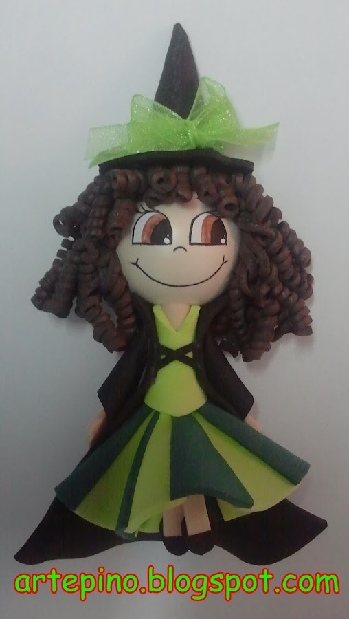 Esta simpática bruja, la hice ayer por encargo. Puedes disfrutar de más fotos en esta sección: FOFUCHAS arte pino