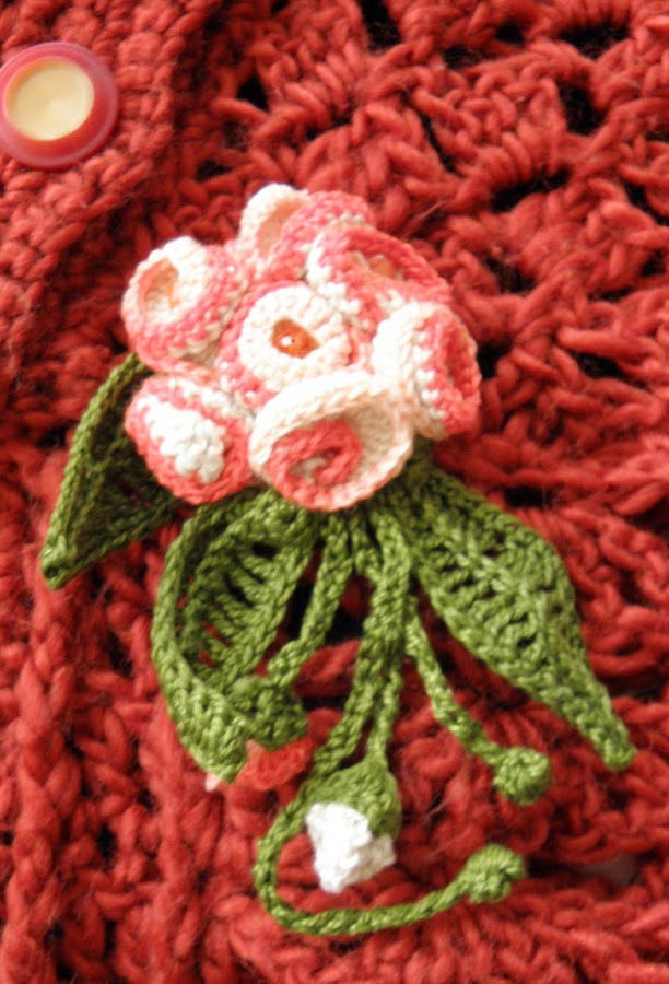 Hacer un circulo para la parte de atrás y tejer las hojas.
