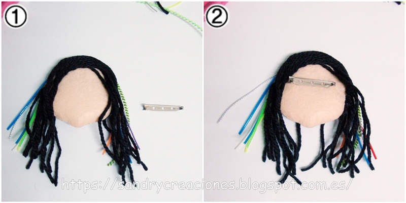 Si se quisiera se le podría poner también cabello por detrás, pero como es un broche creemos que no hace falta y además solo sería un estorbo a la hora de poner y sacar el broche.