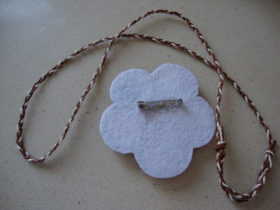 Esta vez el montaje ha sido una flor, rematada por detrás como broche, pero con un cordón accesorio de quita y pon para que sirva también de colgante.