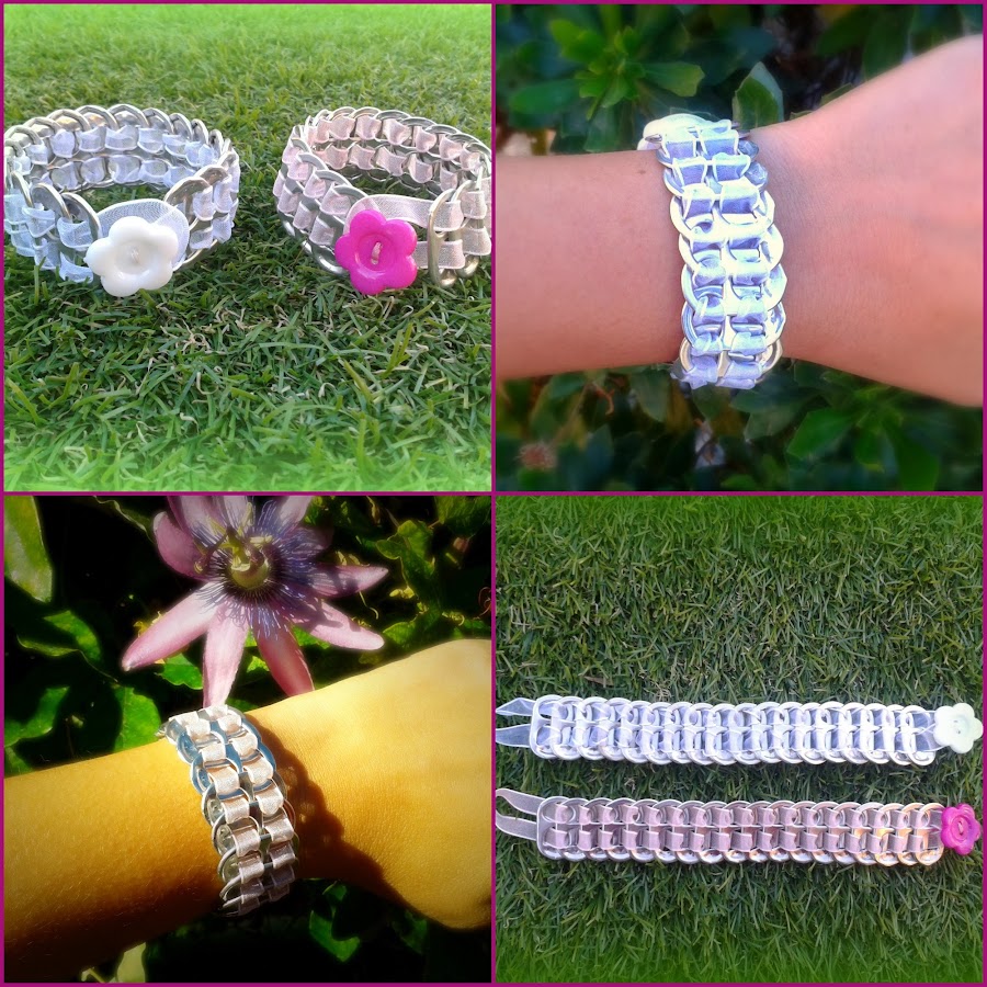 También me encargaron dos pulseas con anillas de lata, una blanca y otra rosa claro, aquí están:
