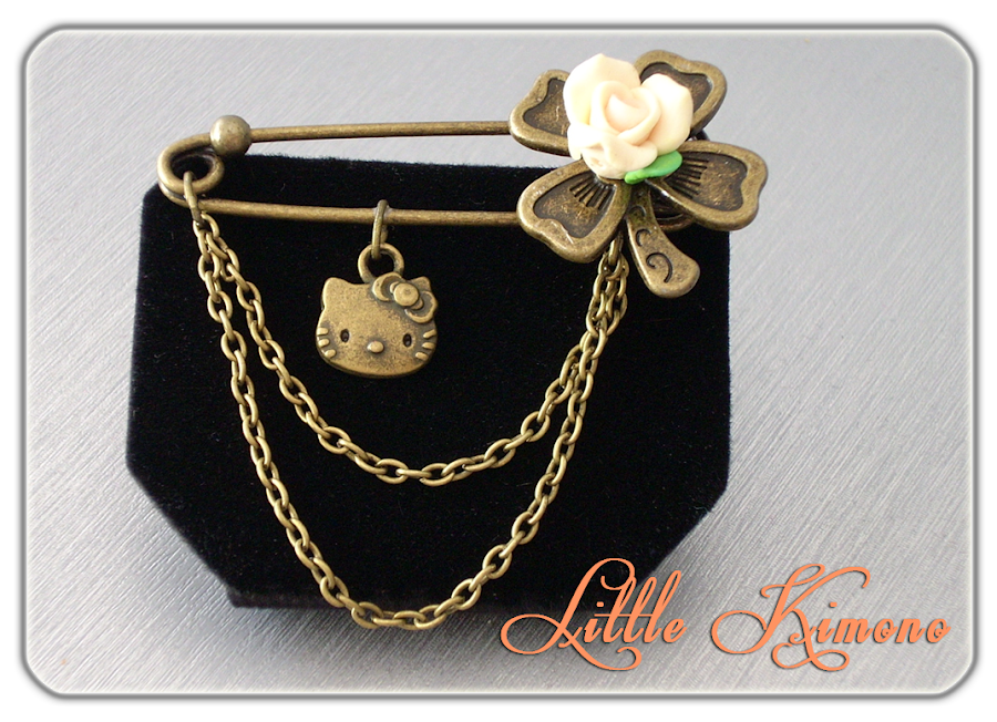 Broche + Pendientes Vintage Kitty