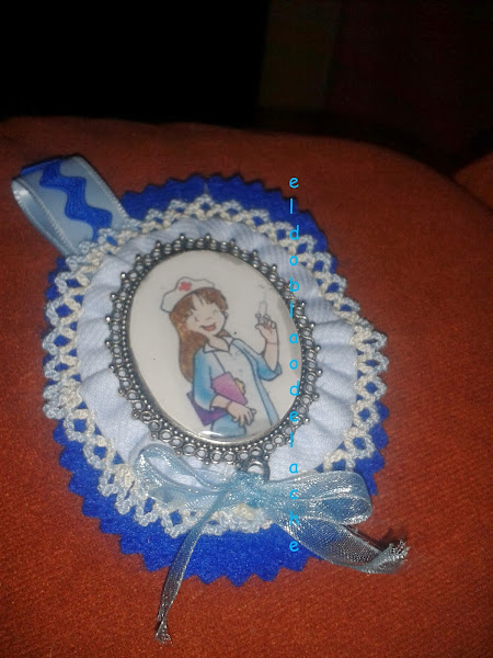 En esta ocasión el cabuchón lleva una imagen de enfermera, listo para que Yoli lo luzca en sus prácticas.