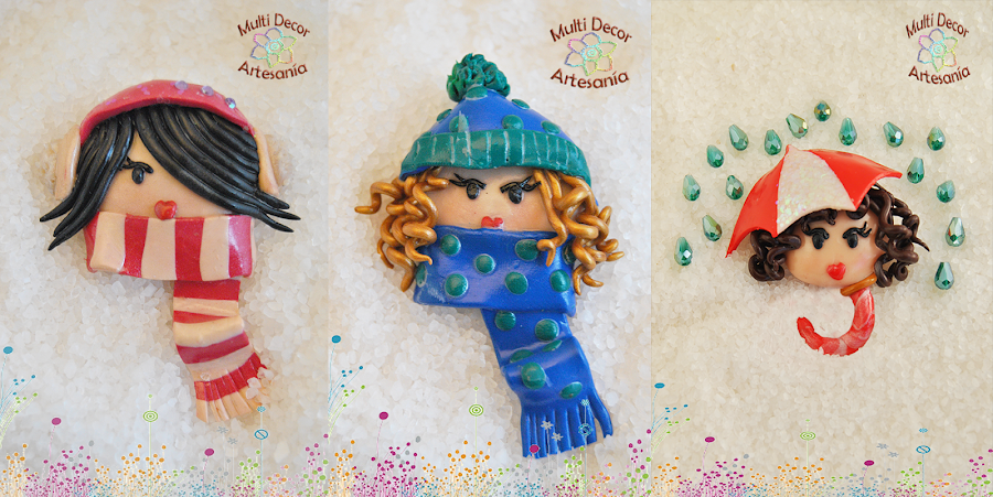 A pesar de que a todos tengo mucho cariño tengo mis favoritos, por supuesto: el broche del paraguas rojo y blanco siempre ha sido mi debilidad, y los broches de la colección "Bufandas", con sus orejeras y sombreros también.