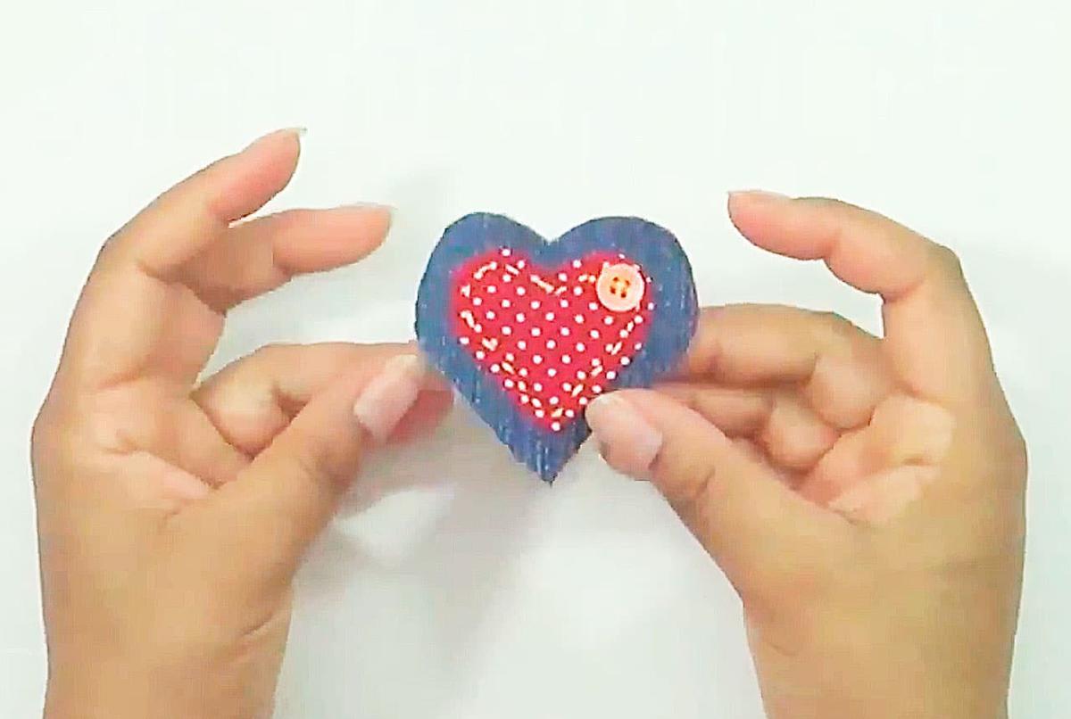 Aprovecha los restos de tela aunque sean muy pequeños y haz detalles para regalar; broches con retazos de tela en forma de corazón, por supuestos puedes hacer la figura que quieras.