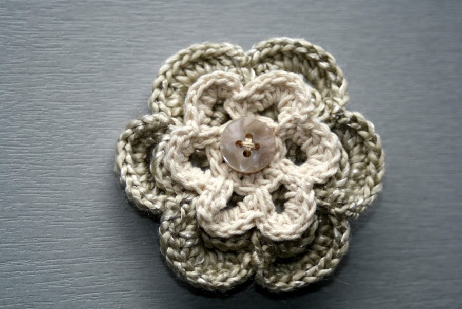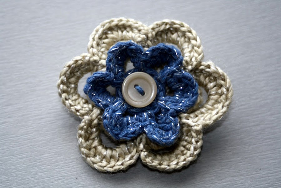 Así cuando me llevo el bolso de crochet, me adorno la camiseta de turno con este broche y queda muy conjuntado.