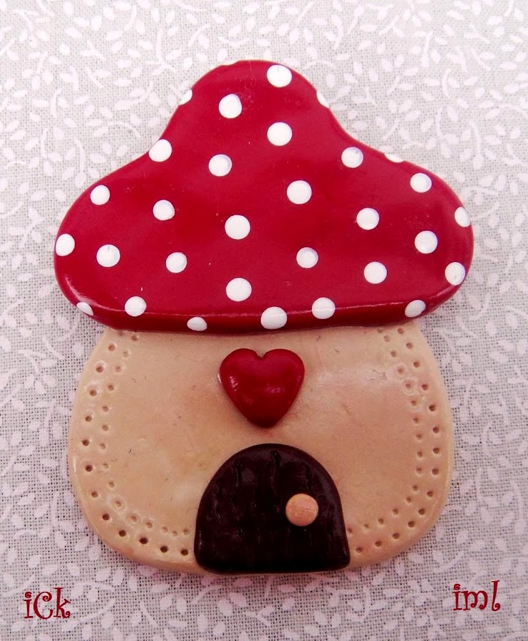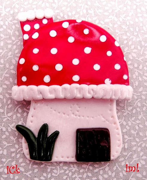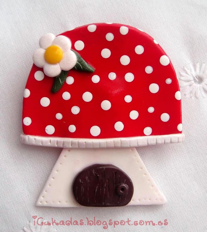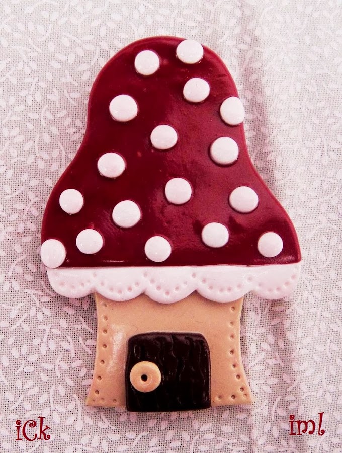 Bueno, en realidad son casas seta. Ya os anuncié en el post de la funda para portátil ( AQUI), que me gustó tanto el resultado, que había hecho botones, broches y de todo, porque me encantan las casitas y me pirran las setas, así que la combinación de las dos tenía que llegar, estaba claro.