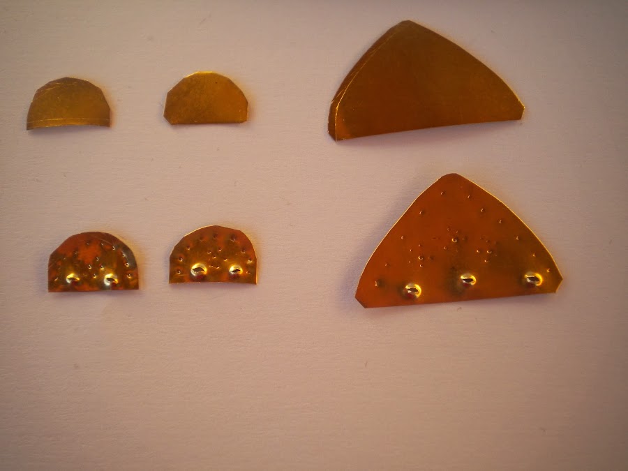 De la chapa de latón recorto las peinetas pequeños y la grande, como se puede observa en la fotografía.