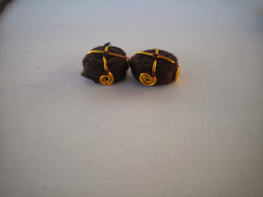 En segundo lugar yo empiezo ha hacer los moños, para ello cojo las tiras de fieltros y las enrrollo, una vez enrollado lo cosemos.