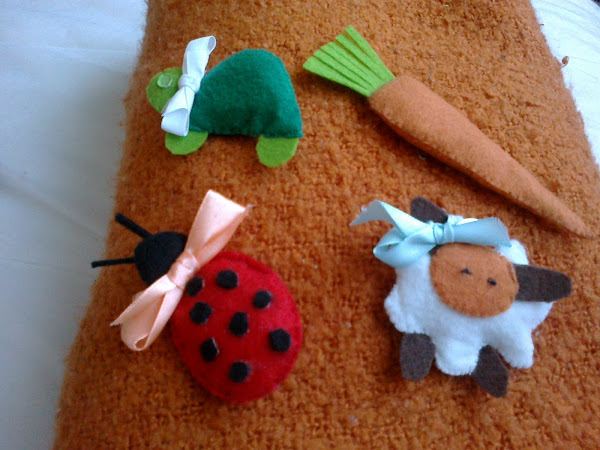 broche fieltro tortuga, zanahoria, mariquita y oveja a 4 â?¬