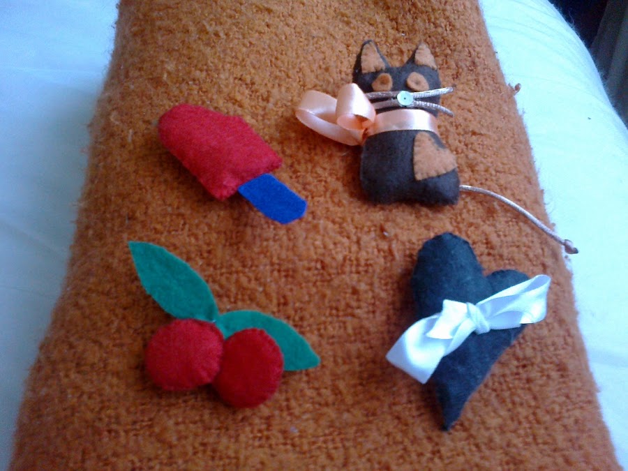 broche fieltro helado, gato, cerezas y corazón a 4 â?¬
