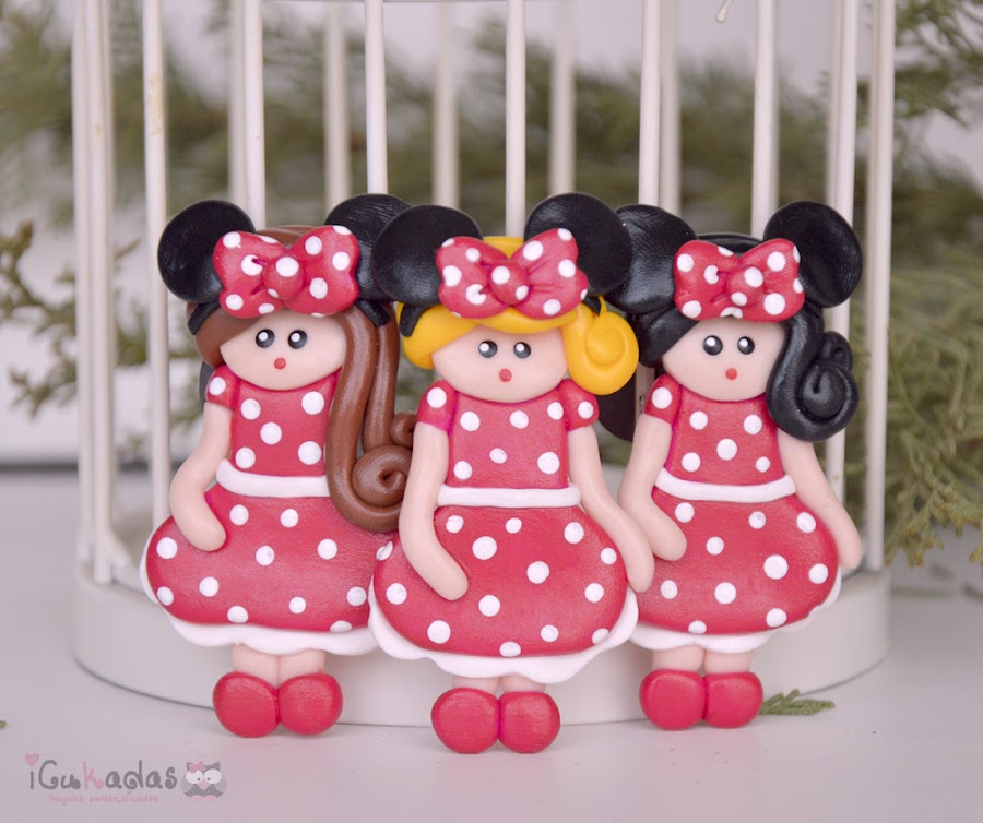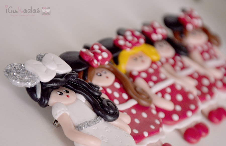 El resto de invitadas van vestidas de Minnie, en rojo, con sus clásicos lunares y sus diademas con orejas y lazo y así nos las encargaron.