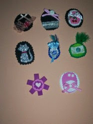 Hoy quería enseñaros unos broches que he hecho para ir practicando muy variados. He utilizado goma eva, telita de encaje, botones, cintas, etc. vamos lo que tenía por casa.